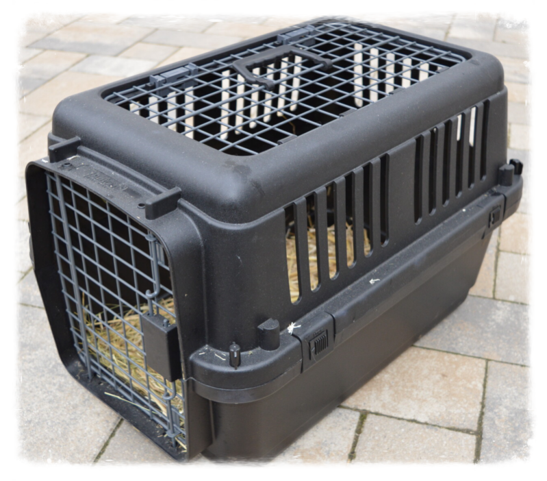 Zur Abholung bringen Sie bitte eine ausreichend große Transportbox mit. Wir empfehlen Hunde- bzw. Katzentransportboxen in Größe XS-S bzw. den Maßen 37 x 56 x 33 cm. Darin finden zwei Zwergkaninchen ausreichend Platz, sie können sich auch mal hinlegen und für unterwegs mit Heu und Saftfutter versorgt werden. Eine Öffnung von oben ist besonders für Tierarztbesuche sehr praktisch. Kleintierboxen sind meist viel zu klein, selbst für die kleinsten Zwergkaninchen.